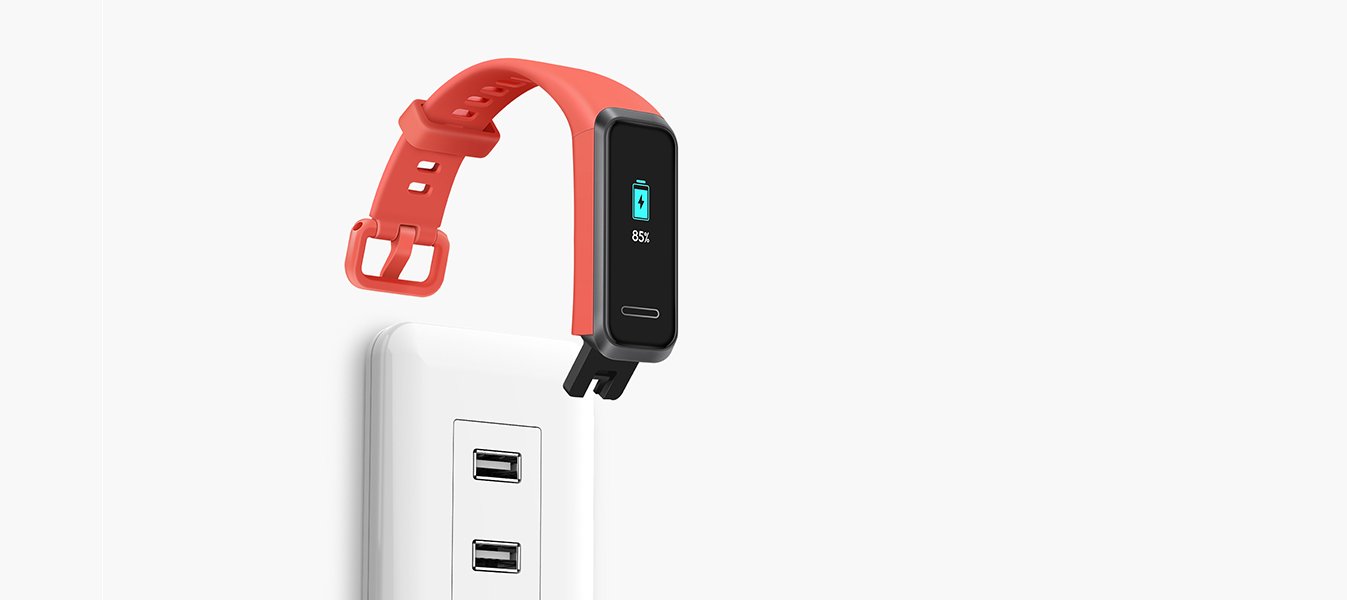 Free you from different cables and chargers. The built-in USB plug of HUAWEI Band 4 fits in general USB chargers so you charge it anywhere and anytime. A single charge powers the band with more than 6 days of usage time.
