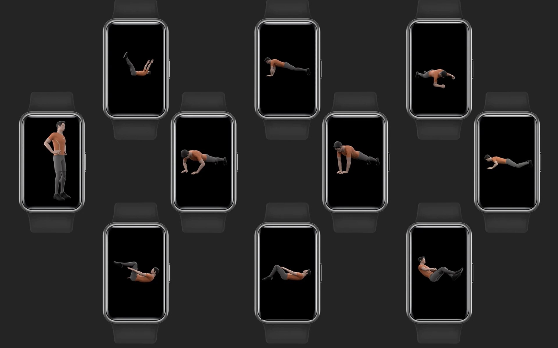 Սկսեք մարզումը ցանկացած ժամանակ HUAWEI WATCH FIT-ի միջոցով և ազատվեք մարզումների տեսագրություններ փնտրելու անհրաժեշտությունից: Այս ժամացույցները ունեն 12 տեսակի դասընթացներ անիմացիոն խորհուրդներով, ինչպիսիք են՝ «մարզում աշխատանքի ժամանակ», «ձգման ամբողջական համախումբ», «մկանային մարզումներ», ներառում է 44 ստանդարտ վարժություններ: Արդյունավետ օգտագործեք ձեր ազատ ժամանակը, սուրճի ընդմիջումները կամ հանգստյան ժամերը՝ սմարթ ժամացույցներով լավ ֆիզիկական վիճակը պահելու համար: